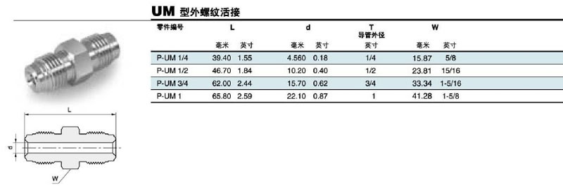 P-UM1/4,P-UM1/2,P-UM3/4,P-UM1,外螺纹活接头