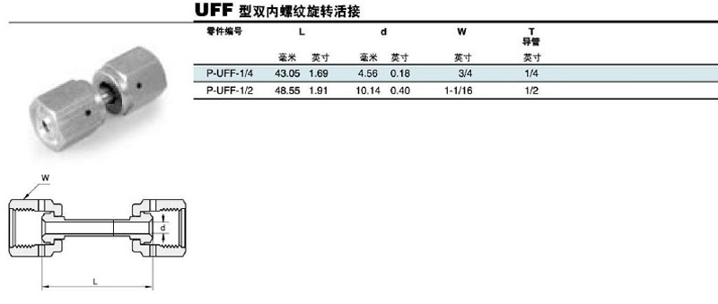 P-UFF-1/4,P-UFF-1/2,内螺纹旋转活接头