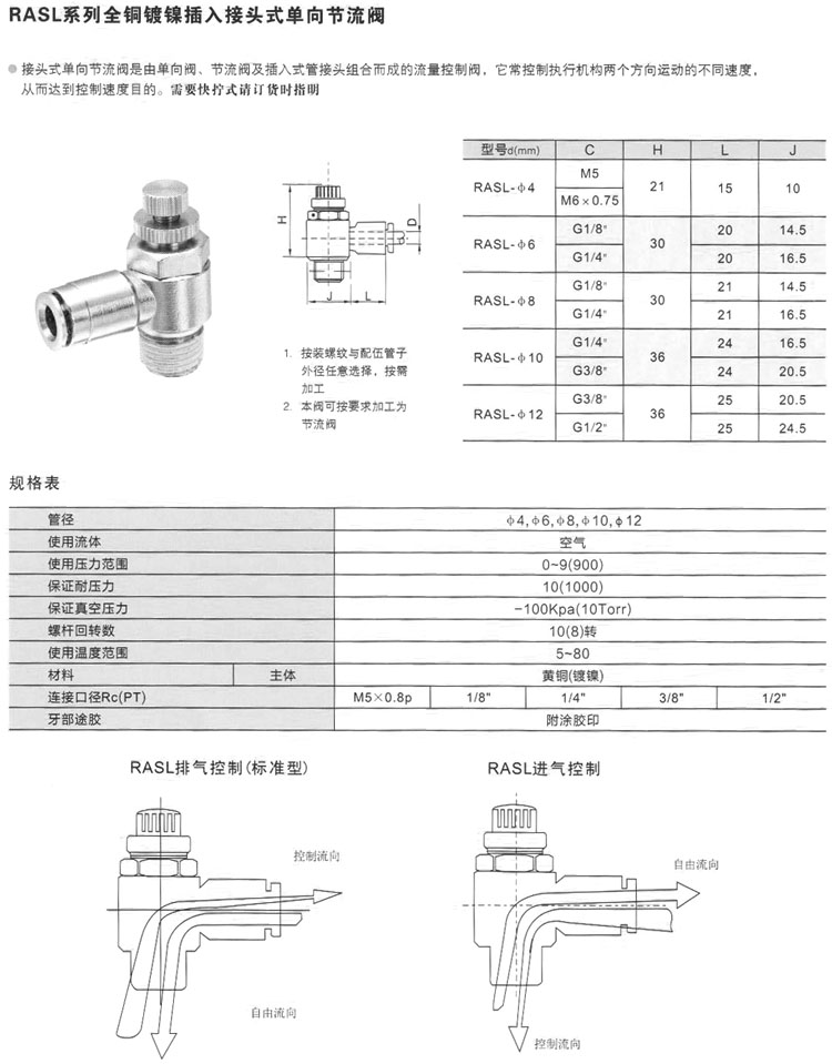RASL-4,RASL-6,RASL-8,RASL-10,RASL-12,单向节流阀