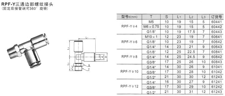 RPF-Y4,RPF-Y6,RPF-Y8,RPF-Y10,RPF-Y12,三通边部螺纹接头