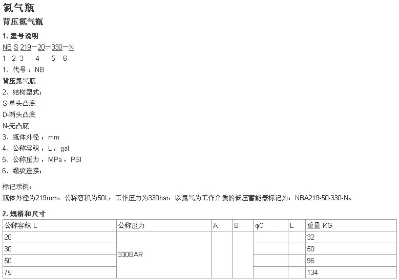 NBS219-20-330-N,NBD219-30-330-N,NBS219-50-330-N,NBS219-75-330-N,氮气瓶