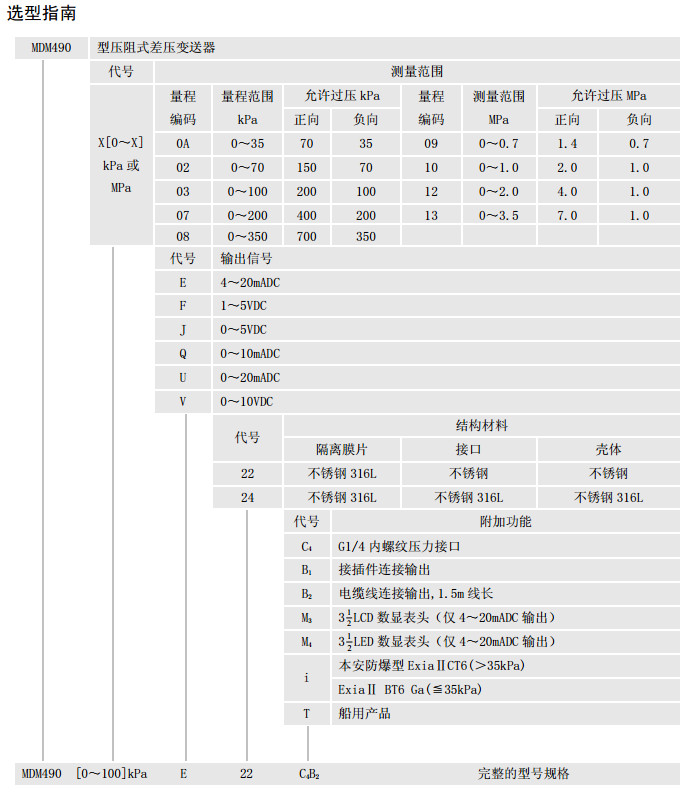 MDM490-OA,MDM490-02,MDM490-03,MDM490-07,MDM490-08,MDM490-09,MDM490-10,压阻式差压变送器