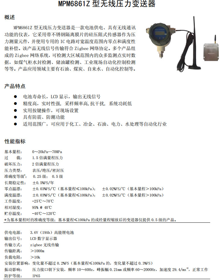 MPM6861Z-0G,MPM6861Z-20G,MPM6861Z-70A,MPM6861Z-0S,MPM6861Z-20S,无线压力变送器