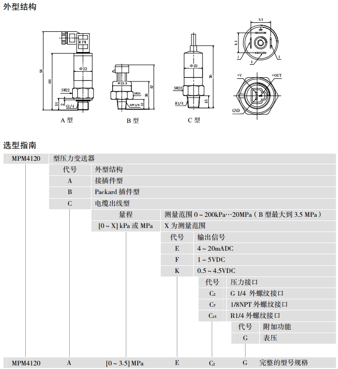 MPM4120A,MPM4120B,MPM4120C,压力变送器