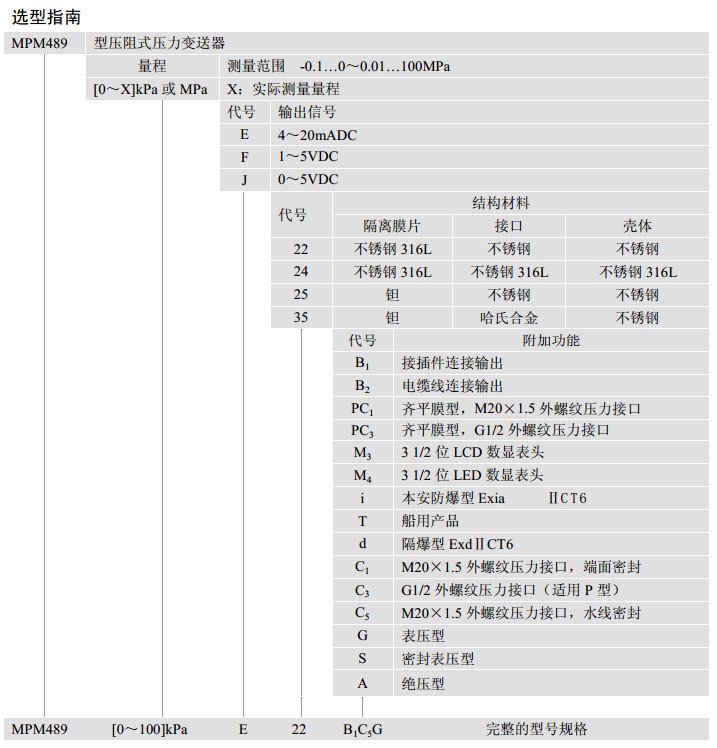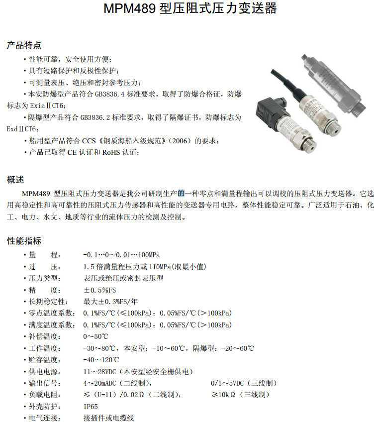 MPM489-0.1,MPM489-0,MPM489-0.01,MPM489-100,压阻式压力变送器
