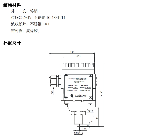 MPM489B-0.1,MPM489B-0,MPM489B-0.02,MPM489B-100,压力变送器