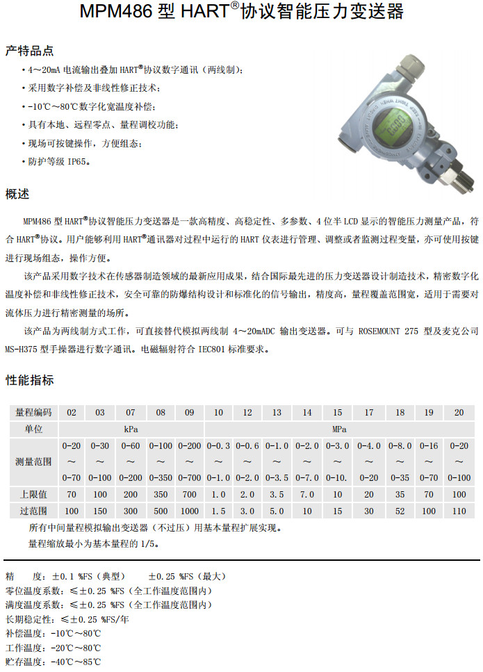 MPM486-02E,MPM486-03E,MPM486-07E,MPM486-08E,MPM486-09E,MPM486-10E,智能压力变送器