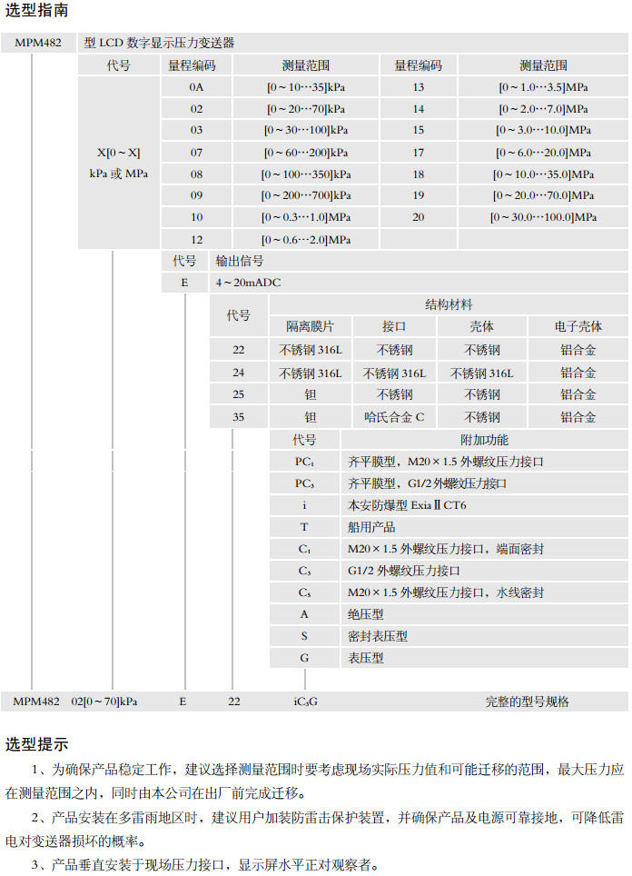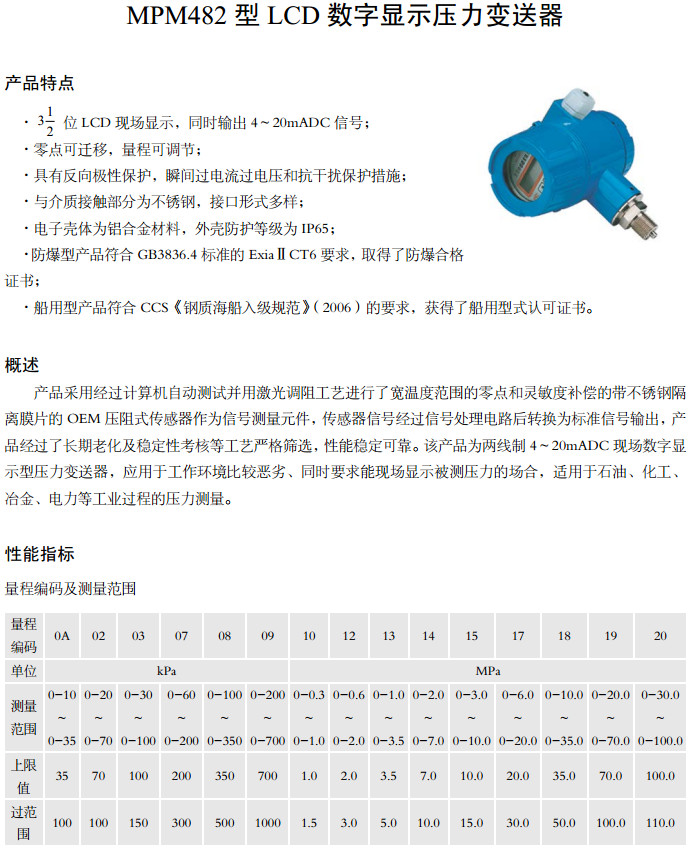 MPM482-OAE,MPM482-02E,MPM482-03E,MPM482-07E,MPM482-08E,MPM482-09E,LCD数字显示压力变送器