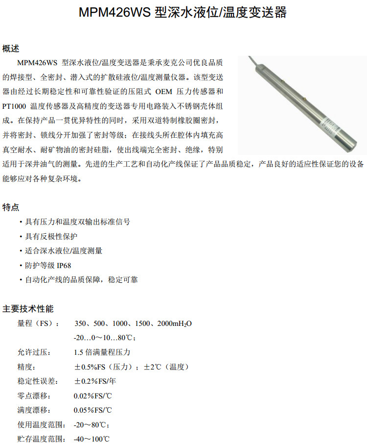 MPM426WS-350,MPM426WS-500,MPM426WS-1000,MPM426WS-1500,MPM426WS-2000,变送器