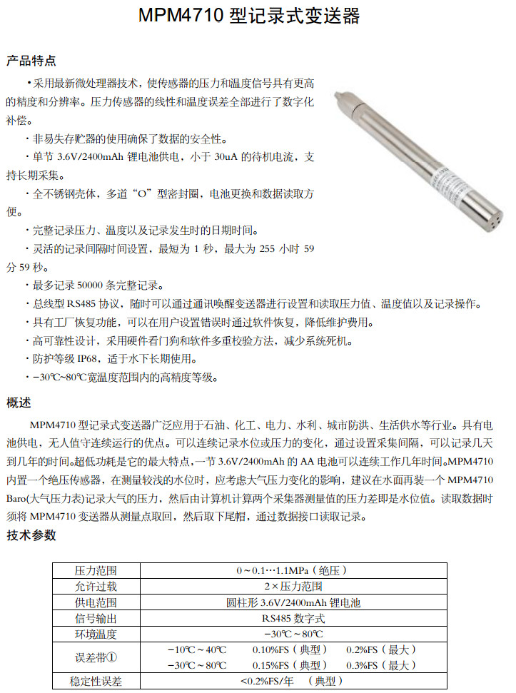 MPM316W,压阻式液位传