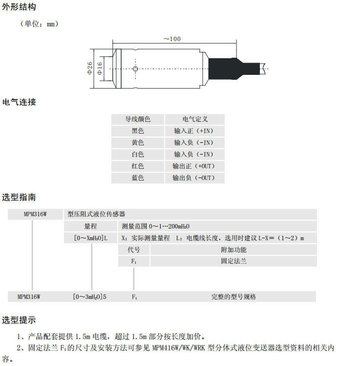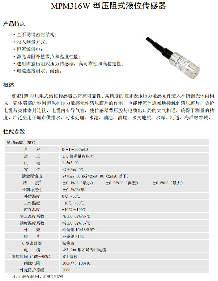 MPM316W,压阻式液位传