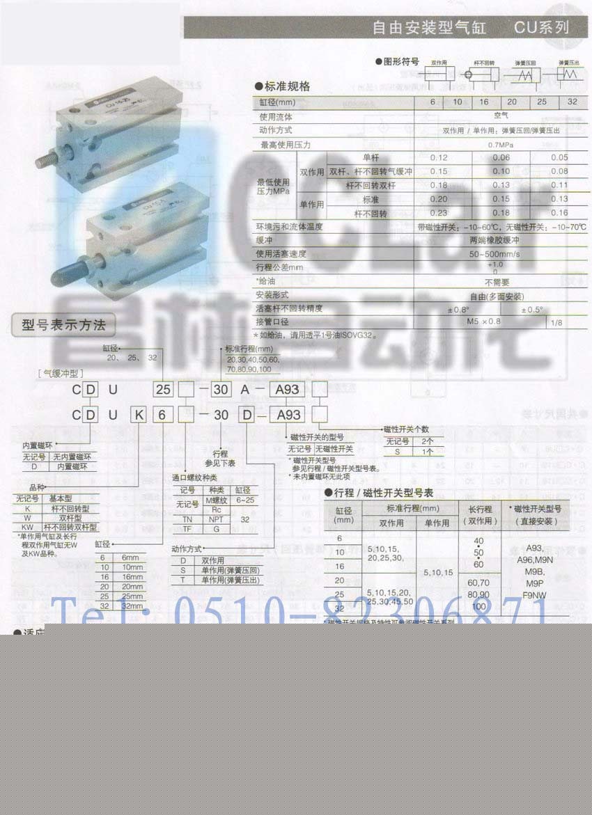 CUKW25-10D,CUKW25-15D,CUKW25-20D自由安装型气缸