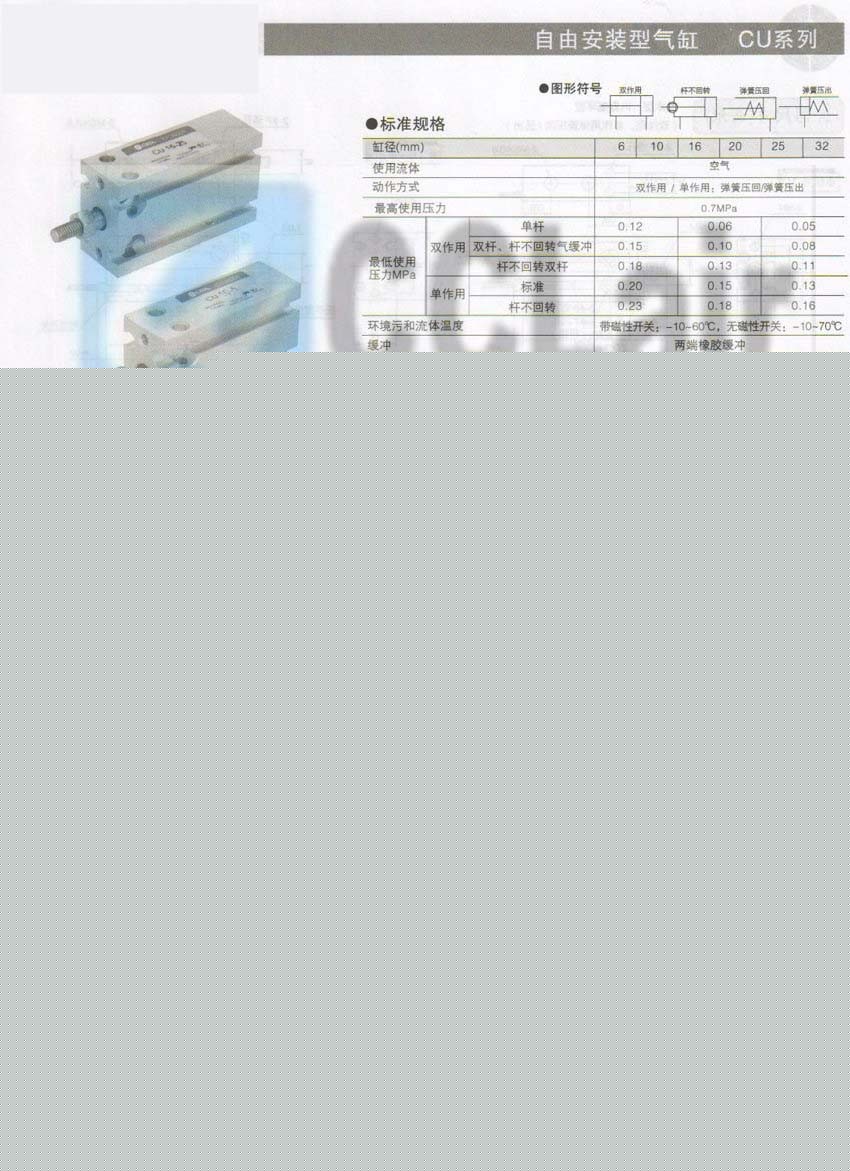 CUKW6-20D,CUKW6-25D,CUKW6-30D,自由安装型气缸