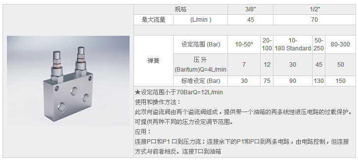 HYVMPD 3/8",HYVMPD 1/2”,双向溢流阀