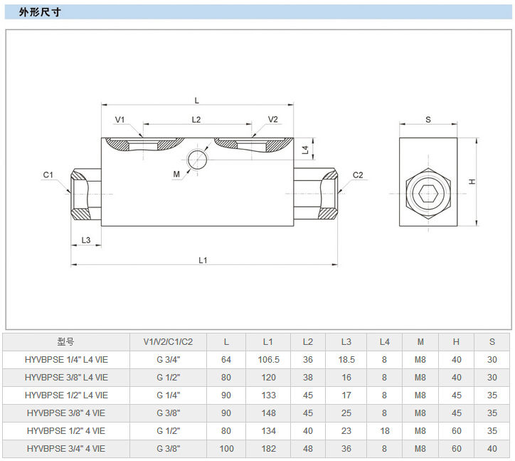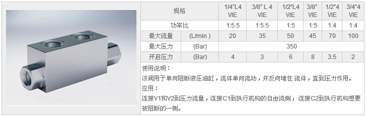 HYVBPSE 1/4" L4 VIE,HYVBPSE 3/8" L4 VIE,HYVBPSE 1/2" L4 VIE,HYVBPSE 3/8" 4 VIE,HYVBPSE 1/2" 4 VIE,单先导式单向阀