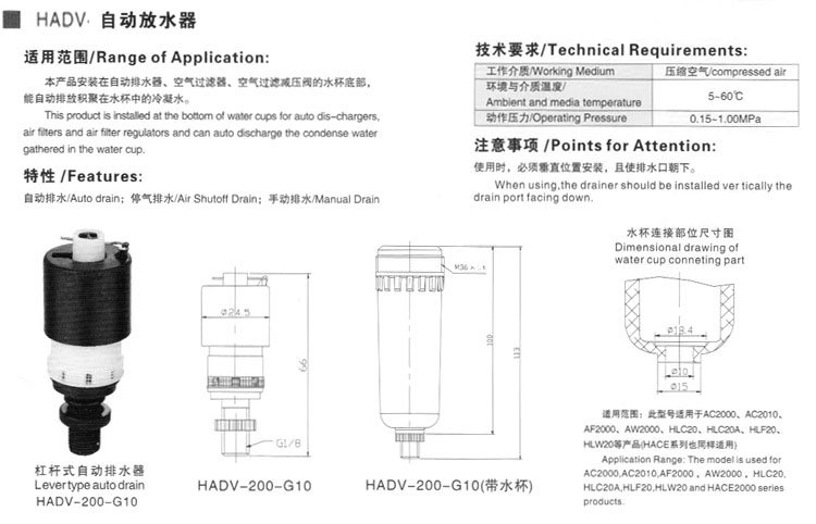 HADV-200-G10,HADV-300-GW12,HADV-400-GW12,杠杆式自动排水器