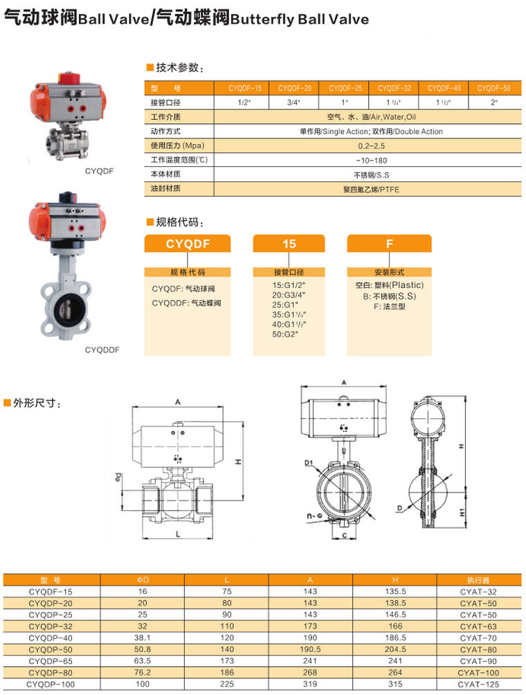 CYQDF-15,CYQDF-20,CYQDF-25,CYQDDF-15,CYQDDF-20,CYQDDF-25,气动球阀
