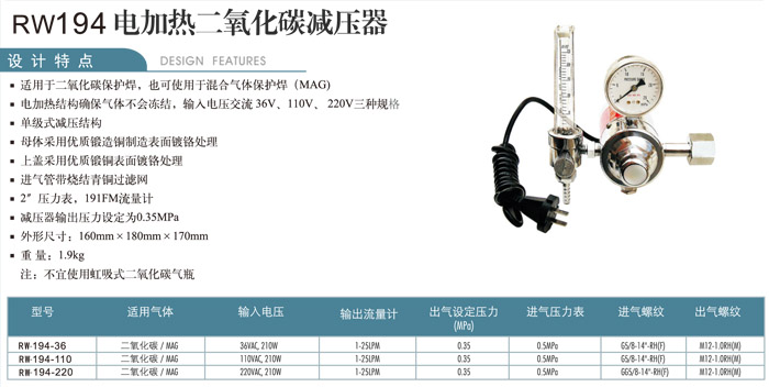 RW-194-36,RW-194-110,RW-194-220,电加热二氧化碳减压器