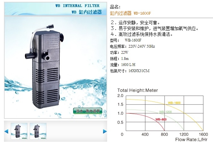 WB-1600F,缸内过滤器