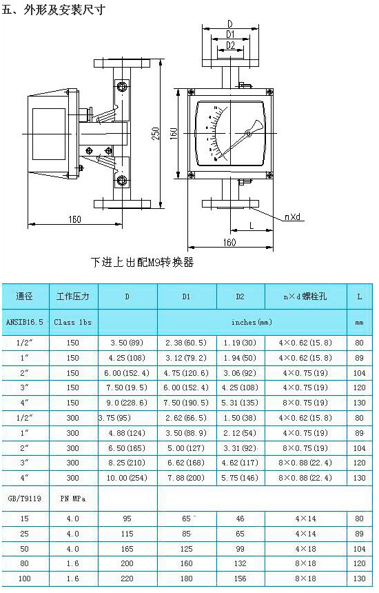 M9 | 非线性指示器(就地指针显示瞬时流量) | |||||||||