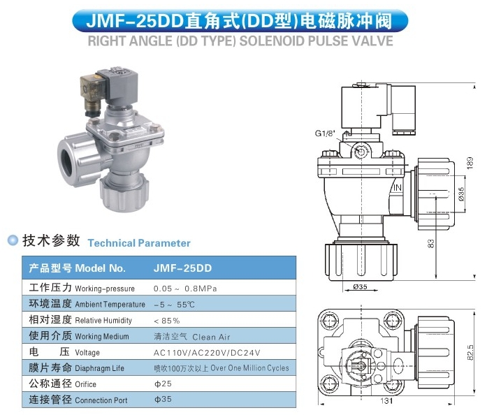 JMF-25DD,直角式电磁脉冲阀