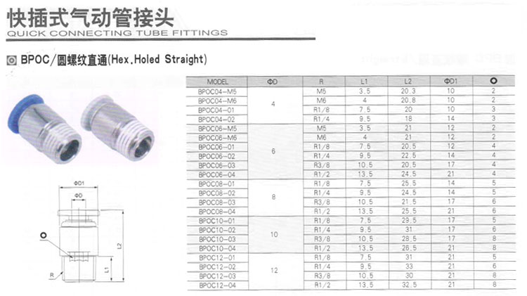 BPOC04-M5,BPOC06-M5,BPOC08-01,BPOC10-01,BPOC12-01,BPOC04-M6,快插式气动管接头