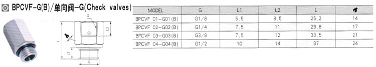BPCVF01-G01(B),BPCVF02-G02(B),BPCVF03-G03(B),BPCVF04-G04(B),单向阀