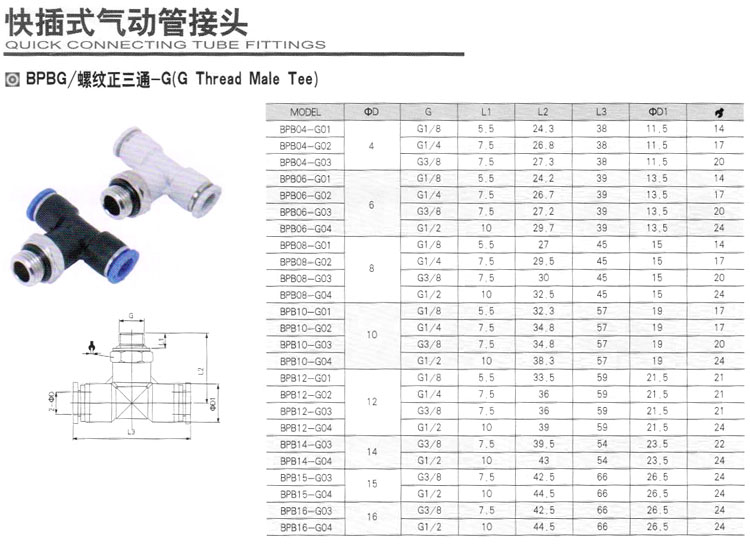 BPB04-G01,BPB06-G01,BPB08-G01,BPB10-G01,BPB12-G01,BPB14-G03,BPB15-G03,BPB16-G03,快插式气动管接头