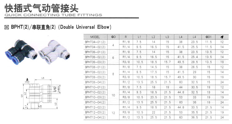 BPHT04-01(2),BPHT06-01(2),BPHT08-01(2),BPHT10-01(2),BPHT12-02(2),快插式气动管接头