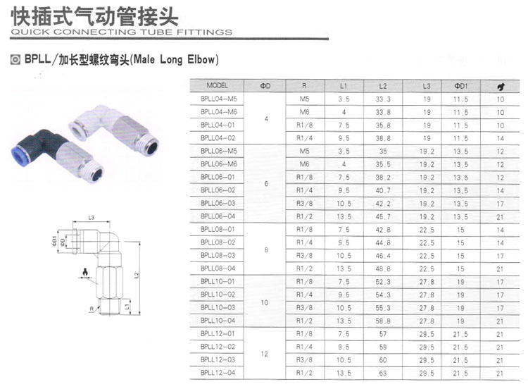 BPLL04-M5,BPLL06-M5,BPLL08-01,BPLL10-01,BPLL12-01,BPLL04-M6,BPLL06-M6,快插式气动管接头