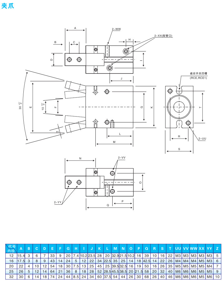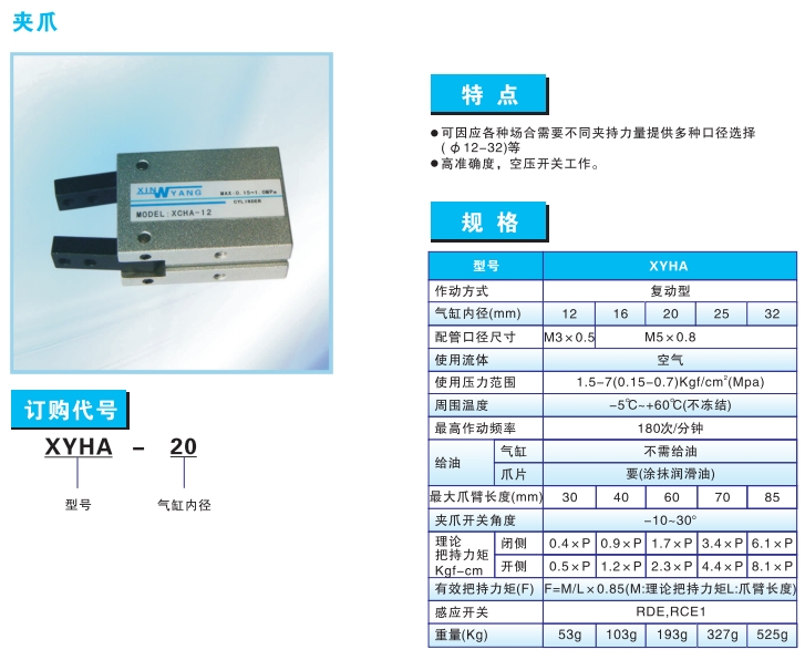 XYHA-12,XYHA-16,XYHA-20,XYHA-25,XYHA-32,夹爪气缸