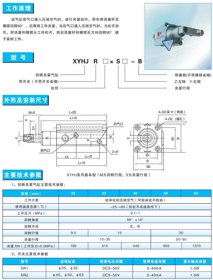 XYHJ25*10Z-B,XYHJ32*30Z-B,XYHJR40*10Z-B,XYHJR50*50Z-B,旋转夹紧气缸