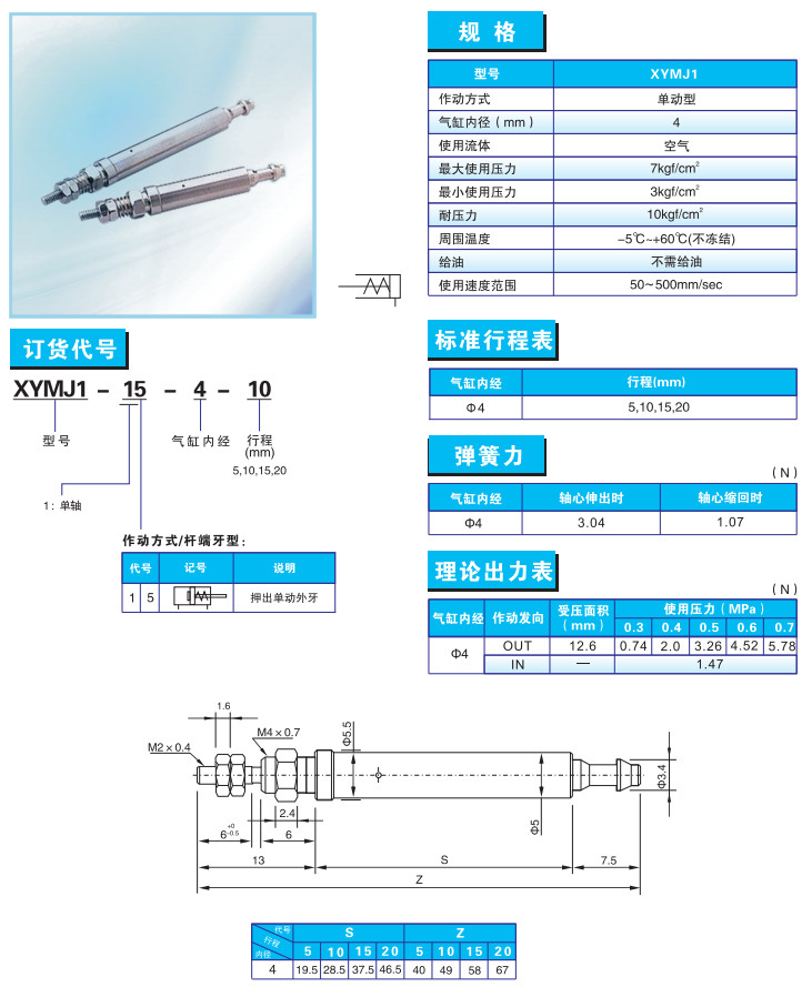 XYMJ1-15-4-5,XYMJ1-15-4-10,XYMJ1-15-4-15,XYMJ1-15-4-20,笔型气缸