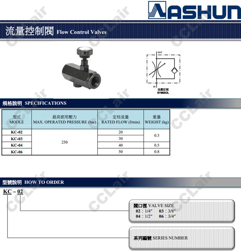 KC-02,KC-03,KC-04,KC-06,ASHUN油顺流量控制阀