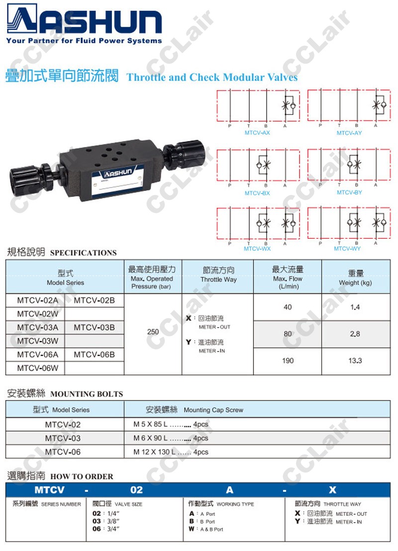MTCV-02A,MTCV-02B,MTCV-02W,MTCV-03A,MTCV-03B,MTCV-03W,MTCV-06A,MTCV-06B,MTCV-06W,ASHUN油顺叠加式单向节流阀