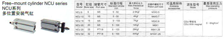 NCU6,NCU10,NCU16,NCU20,NCU25,NCU32,多位置安装气缸