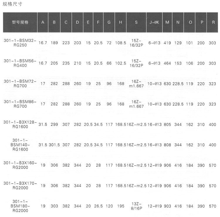 301-1-BSM86-RG700,301-1-B3X128-RG1600,301-1-BSM140-RG1600,301-1-B3X160-RG2000,301-1-B3X170-RG2000,