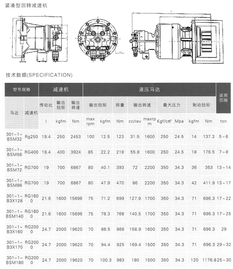 301-1-BSM32,301-1-BSM56,301-1-BSM72,301-1-BSM86,301-1-B3X128,301-1-BSM140,紧凑型回转减速机