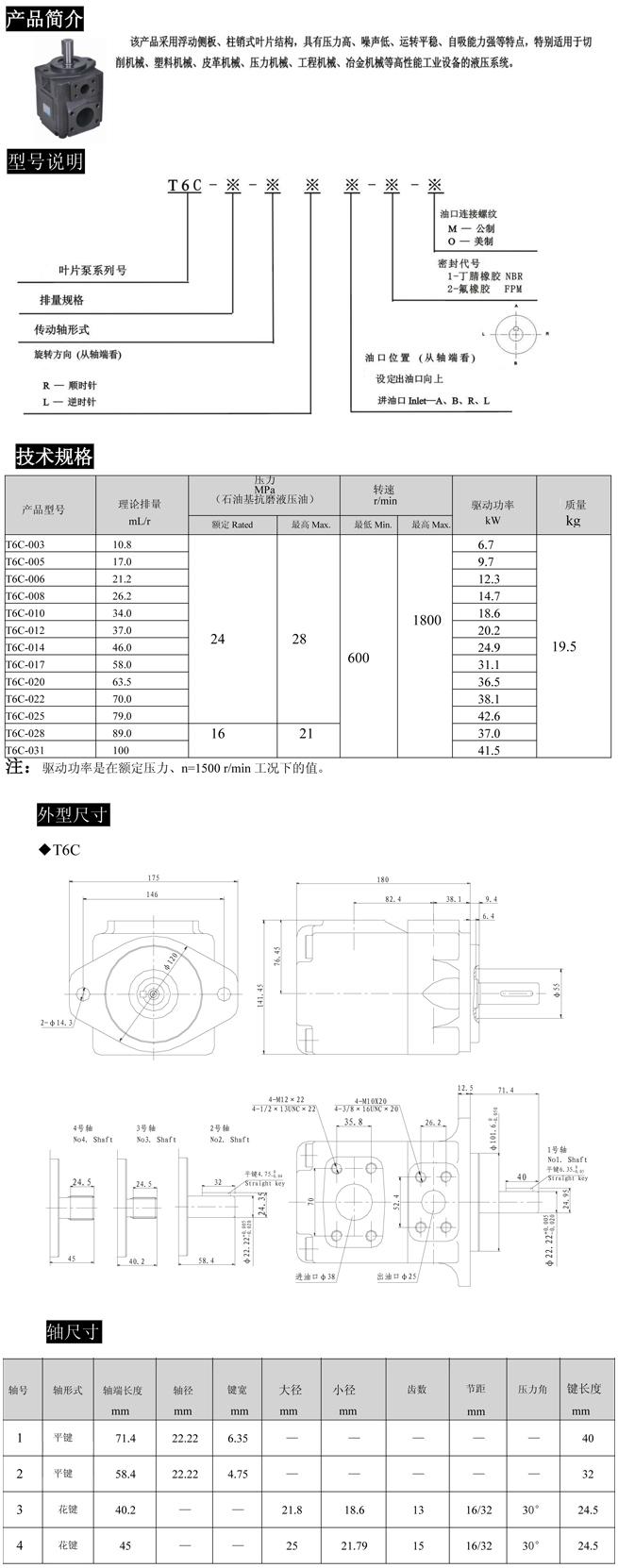 T6C-003,T6C-005,T6C-006,T6C-008,T6C-010,T6C-012,T6C-014,T6C-017,T6C-020,高压柱销式叶片泵