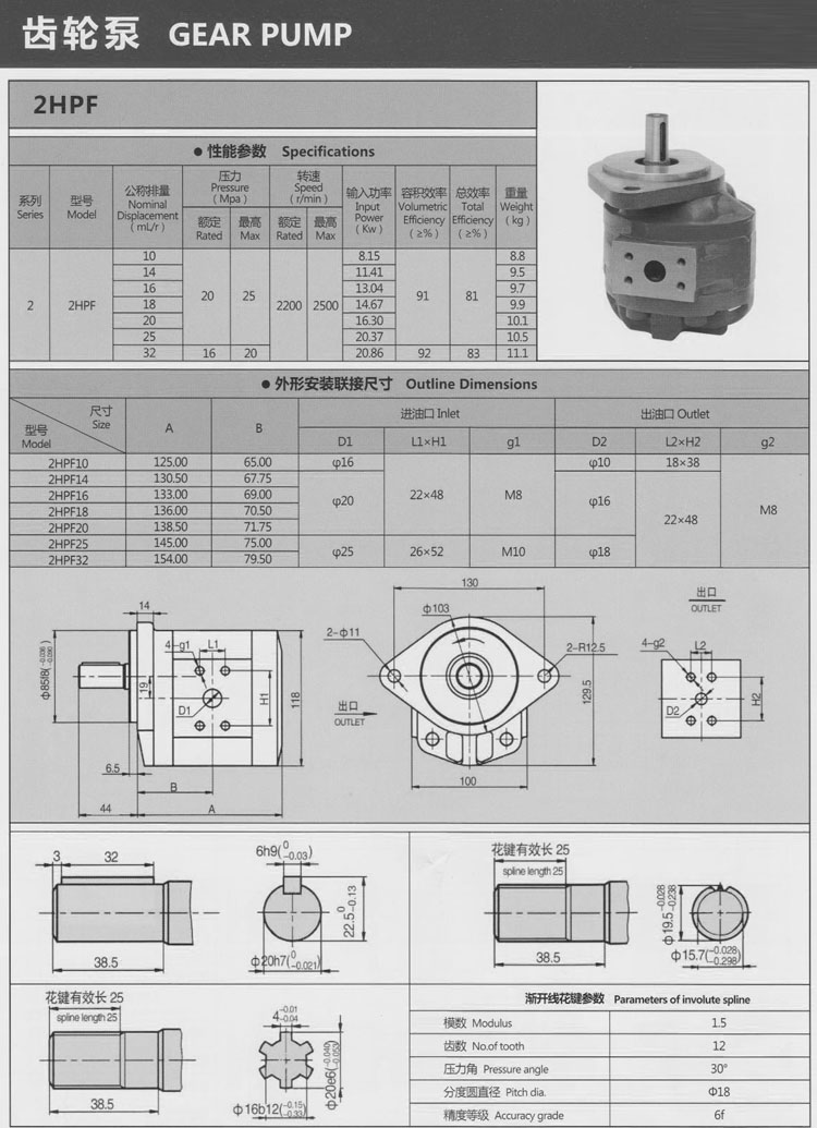 2HPF10,2HPF14,2HPF16,2HPF18,2HPF20,2HPF25,2HPF32,齿轮泵