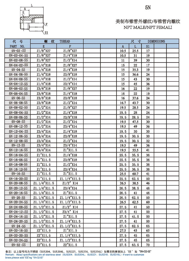 5N-16-04-SS,5N-16-06-SS,5N-16-08-SS,5N-16-12-SS,5N-16-SS,5N-16-20-SS,5N-20-08-SS,