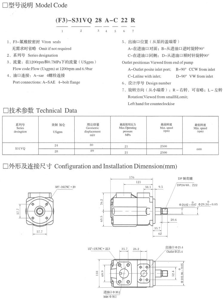S31VQ28A-C22R,S31VQ28A-A22R,S31VQ24A-B22L,S31VQ24A-D22L,叶片泵
