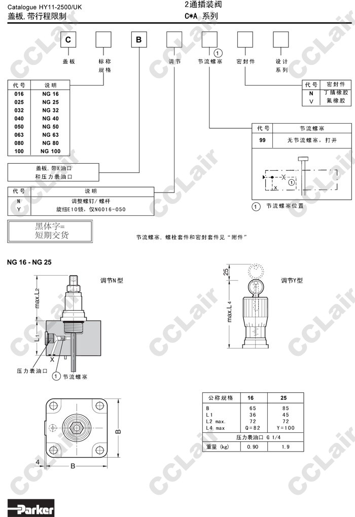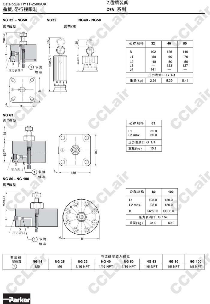 C016B,C025B,C032B,C040B,C050B,C063B,C080B,C100B,C016BN99N,C016BY99N,Parker2通插装阀盖板
