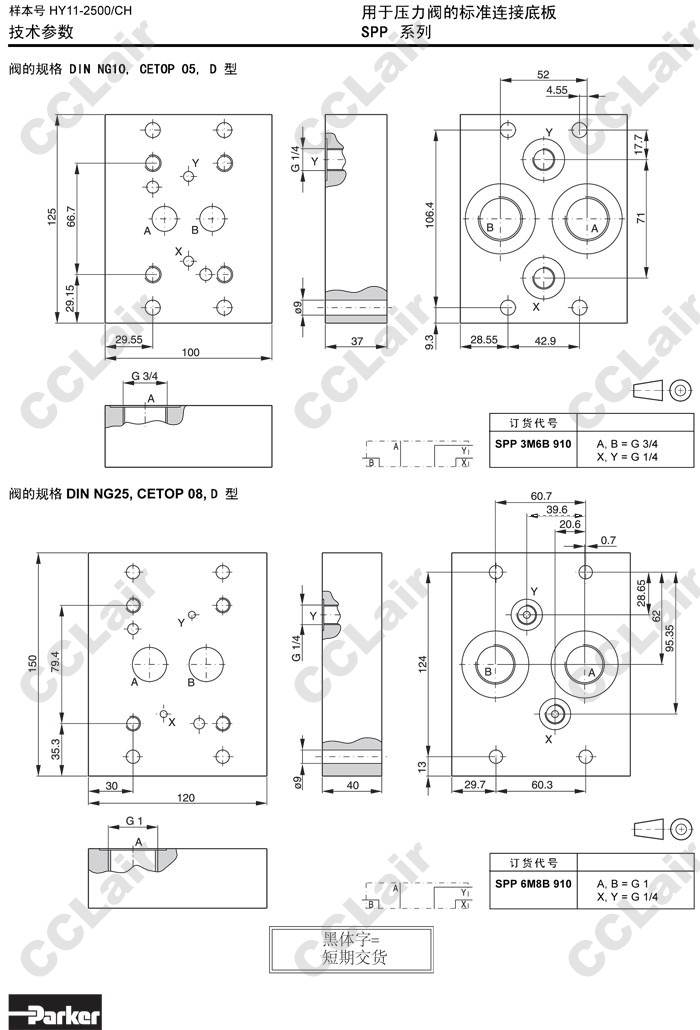 SPP3M6B910,SPP6M8B910,Parker标准连接底板