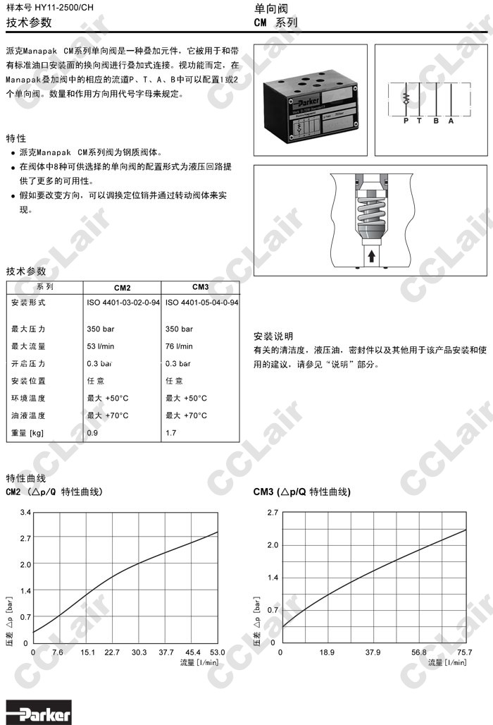CM2AAV,CM2BBV,CM2DDV,CM2PPV,CM2TTV,CM2AAFV,CM2BBFV,CM2DDFV,CM2PTV,Parker单向阀