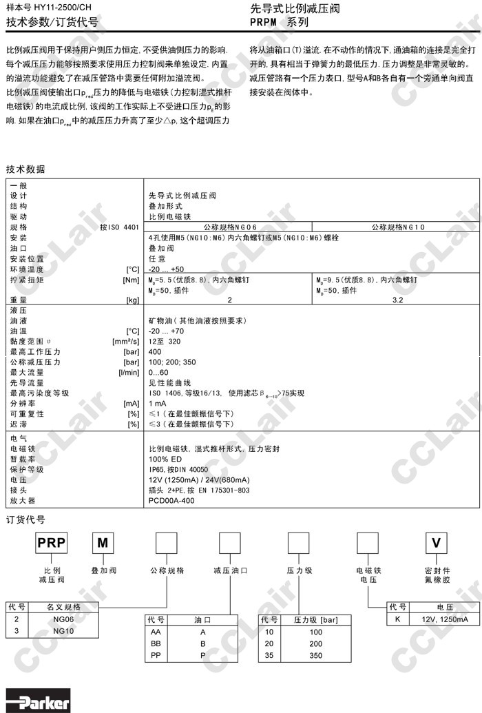 PRPM2AA10K,PRPM2BB10K,PRPM2PP10K,PRPM3AA10K,PRPM3BB10K,PRPM3PP10K,Parker先导式比例减压阀