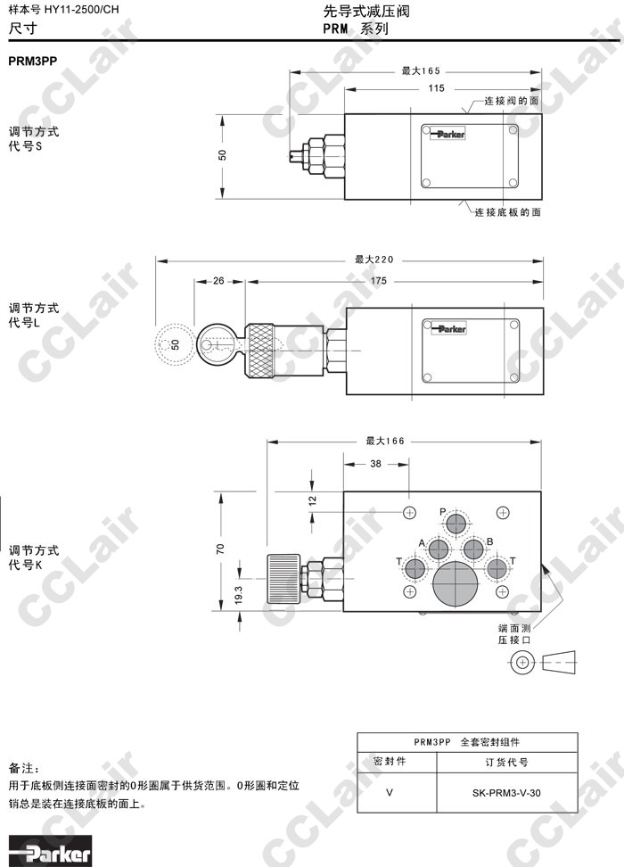 PRM6PA07,PRM6PA17,PRM6PA25,PRM6PA35,PRM6AP07,PRM6AP17,PRM6AP25,PRM6AP35,Parker先导式减压阀