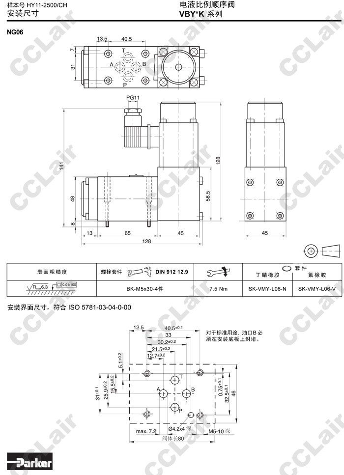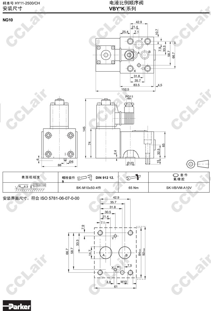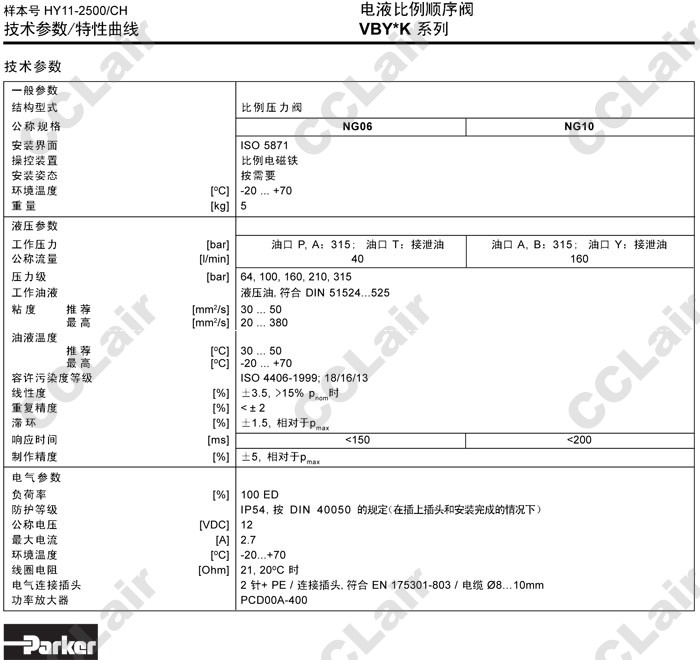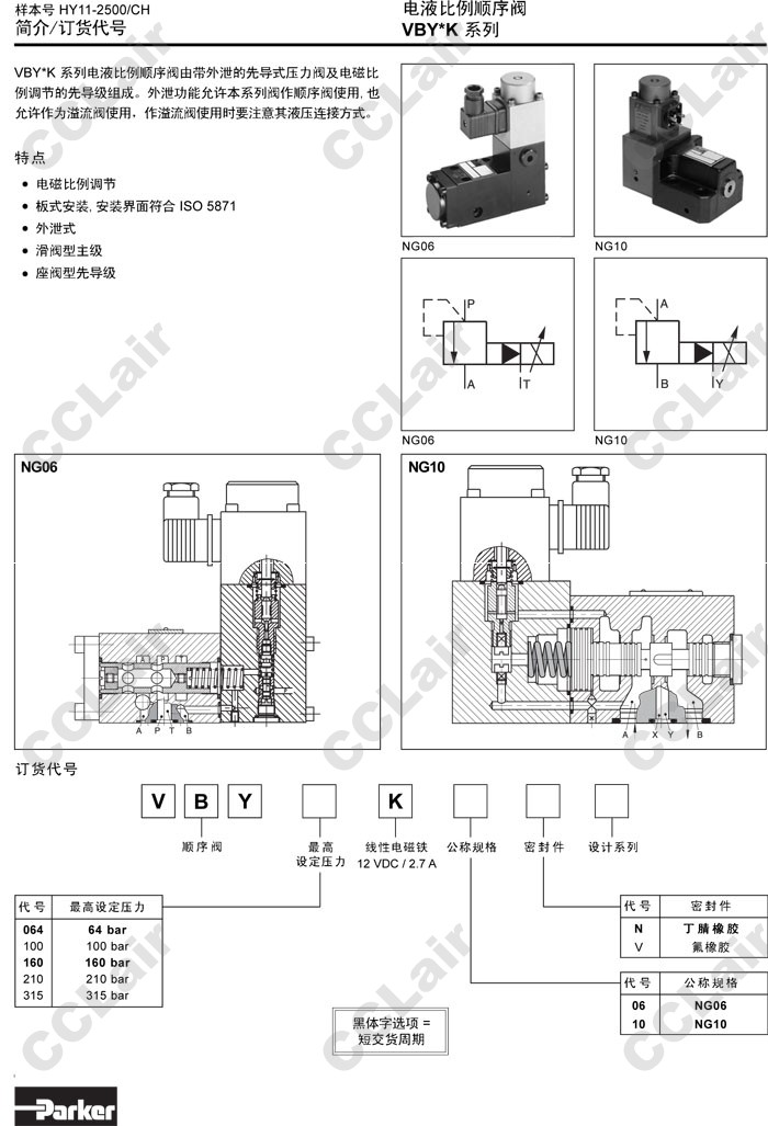 VBY064K06N,VBY100K06N,VBY160K06N,VBY210K06N,VBY315K06N,VBY064K10N,VBY100K10N,Parker电液比例顺序阀