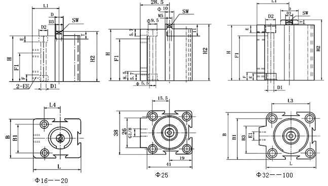 20 | 32 | 20 | - | 10 | 5.5 | 9.5 | M5 | M5 | 5.7 | 6 | 40 | 24 | - | 15 | 8 | 8 |