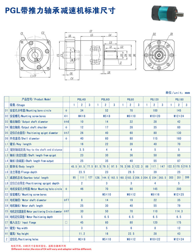 PGL40,PGL60,PGL80,PGL120,PGL180,轴承减速机